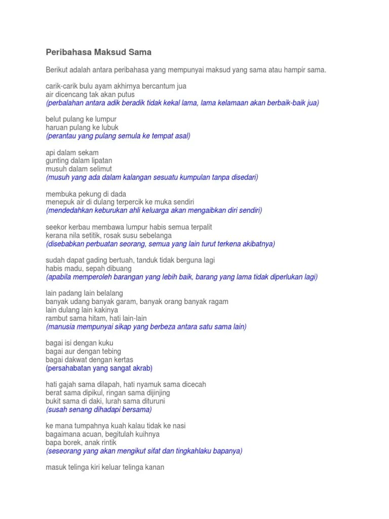 Erti mencurah air ke daun keladi, maksud peribahasa itu ialah memberikan nasihat (ajaran dan sebagainya) yang tidak dapat meresap ke dalam hati . Mencurahkan air di daun keladi. Maksud peribahasa bagai mencurah air ke daun keladi. Memberikan nasihat (ajaran dan sebagainya) yang tidak dapat meresap ke dalam hati. Bagai mencurah air ke daun keladi bermaksud setiap nasihat yang diberikan ataupun sesuatu perkara yang ditunjuk ajar tidak diambil peduli . Memberikan nasihat tetapi tidak diterima oleh orang yang mendengarnya. 1.pesanan atau nasihat atau pengajaran yang tidak dipedulikan atau tidak memberi kesan kepada pendengar. Mencurahkan air di daun keladi bermaksud menasihati akan seseorang tetapi yang mendengar enggan menerima akan nasihat tersebut. Bagai mencurah air ke daun keladi. Smart minder 博学社 6 5 16 今日谚语 白费心机peribahasa hari ini bagai mencurah air ke daun keladi facebook.